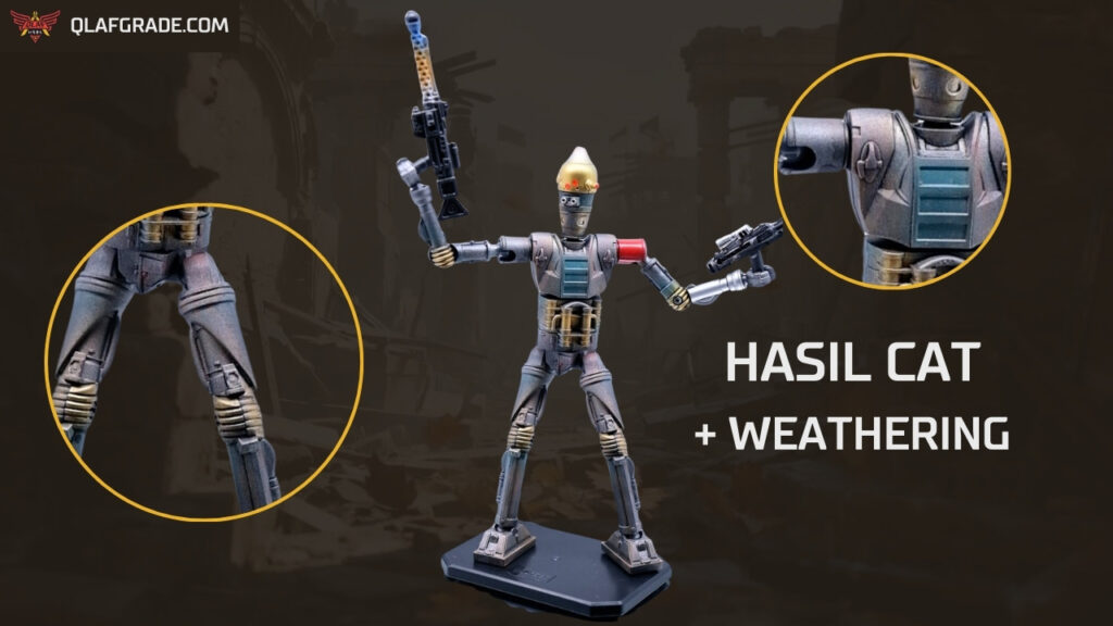 Warna yang terlihat baru belum tentu sesuai dengan konteks kit nya. Seperti figure IG-11 ini, dia adalah assassin droid yang tidak mungkin bagian badannya bersih 100%. Weathering akan memberikan detail seperti kotor dan karat yang lebih realistis.
