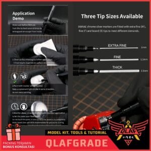 Rp60.000Marker yang dapat menghasilkan efek mirror chrome. Kering sempurna setelah 12 jam. Coating hanya dengan clear coat berbahan acrylic waterbased. Bahan : polypropylene Ujung size : Thick (2.5mm) *Harga untuk 1 PC —————— Belanja kebutuhan model kit di QLAF GRADE dijamin buat Hati Damai , Pikiran Tenang. Klo beli di QLAF GRADE itu AFTER SALESnya…