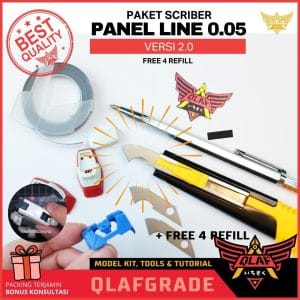 Alat scribing paling sederhana yang dapat menciptakan panel line baru secara baik. Isi paket : – tape scribing guide 6mm (panjang 3 meter) x 1buah – scriber cutter (isi 2 blade) x1buah – scriber pen x1buah Cara pakai : – amplas dulu permukaan part yang ingin discriber (agar pensil dapat menempel) – rencanakan menggunakan pensil…