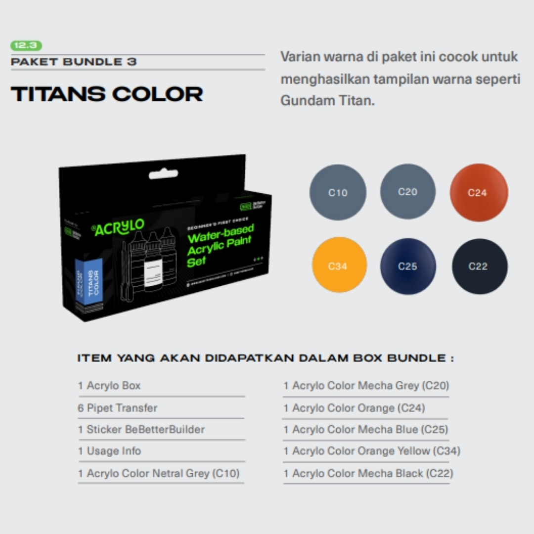 Varian warna di paket ini cocok untuk menghasilkan tampilan warna seperti Gundam Titan.