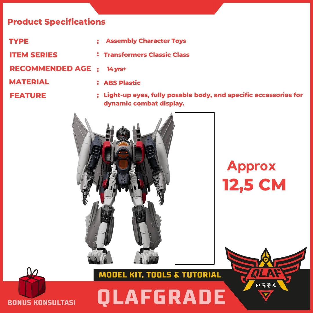 Mainan rakitan seri Classic Class yang menampilkan karakter Triple Changer Blitzwing dalam bentuk robot.