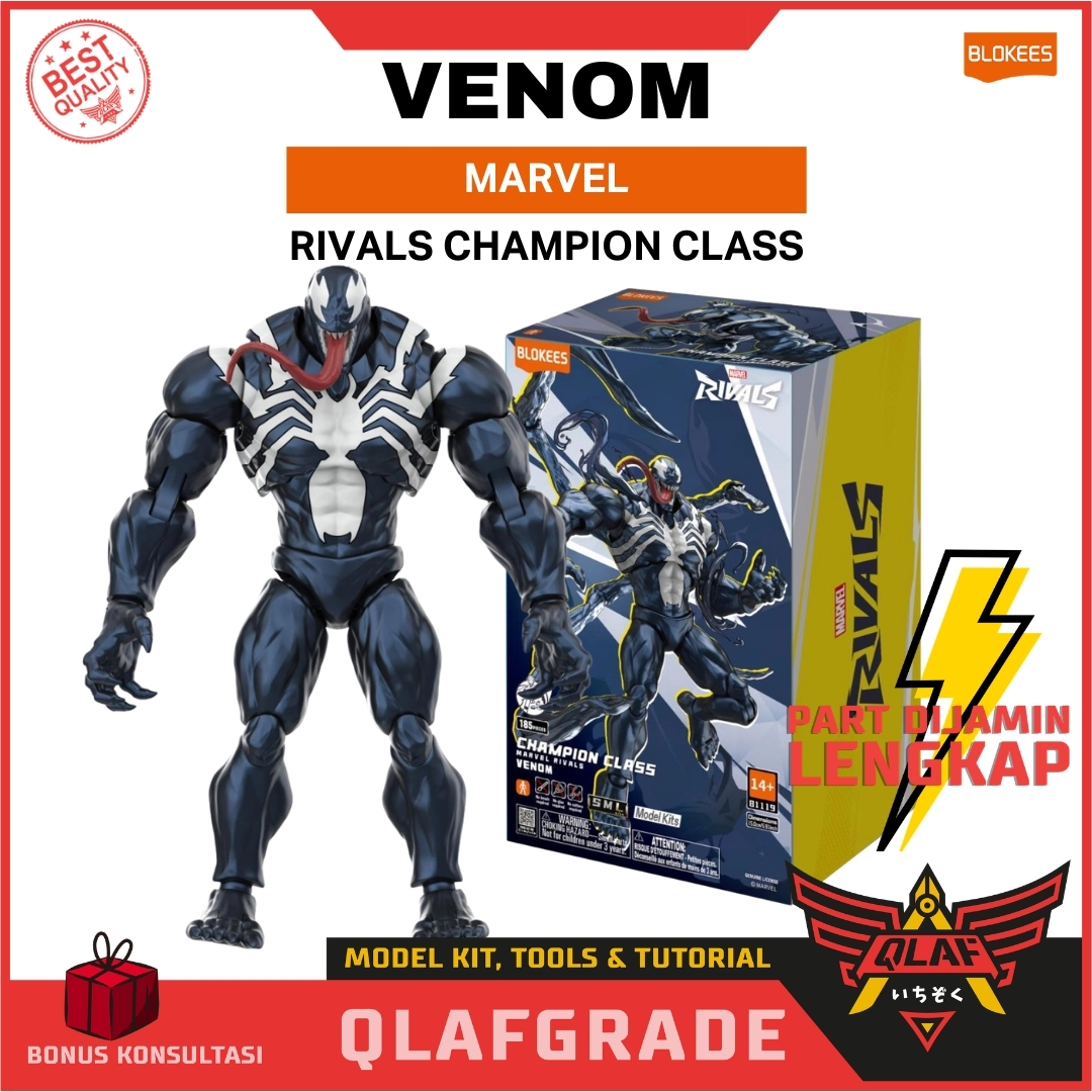 Blokees ini menghadirkan figur Venom yang menakutkan dan kuat, mereplikasi penampilan garangnya dari MARVEL Rivals Champion Class dalam bentuk rakitan yang menarik.