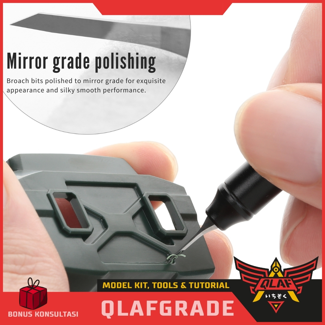 Terbuat dari material baja tungsten yang melalui proses pasivasi untuk mencegah tepi pisau gompel, sehingga efektif memperpanjang masa pakai alat hingga 40 sampai 90 persen. Hasil polesan tingkat cermin pada alat ini memberikan goresan yang sangat halus dan cocok digunakan pada material ABS, PS, PE, resin, serta part cetak 3D.
