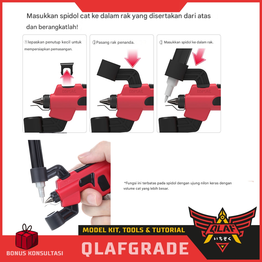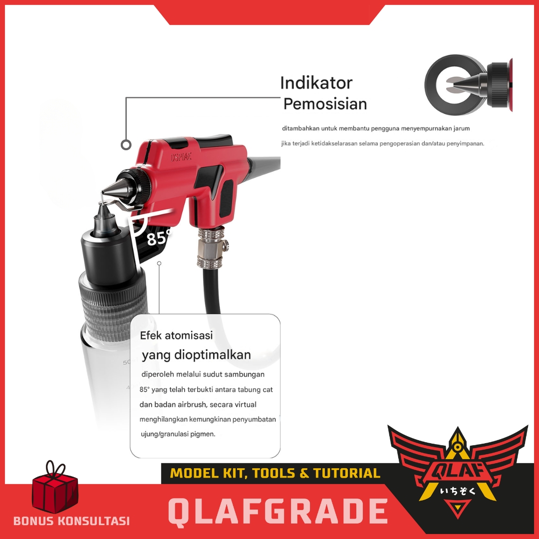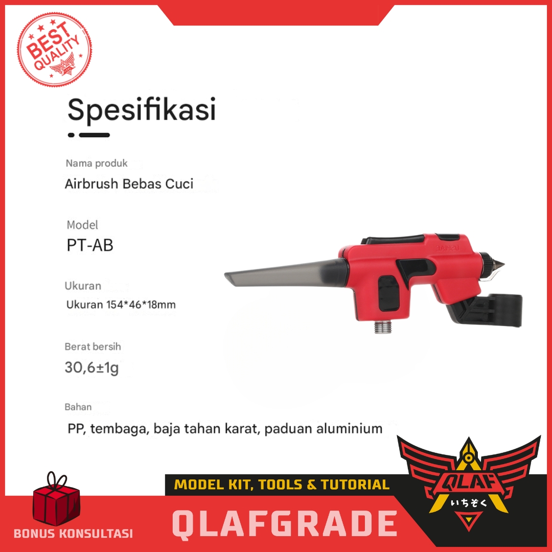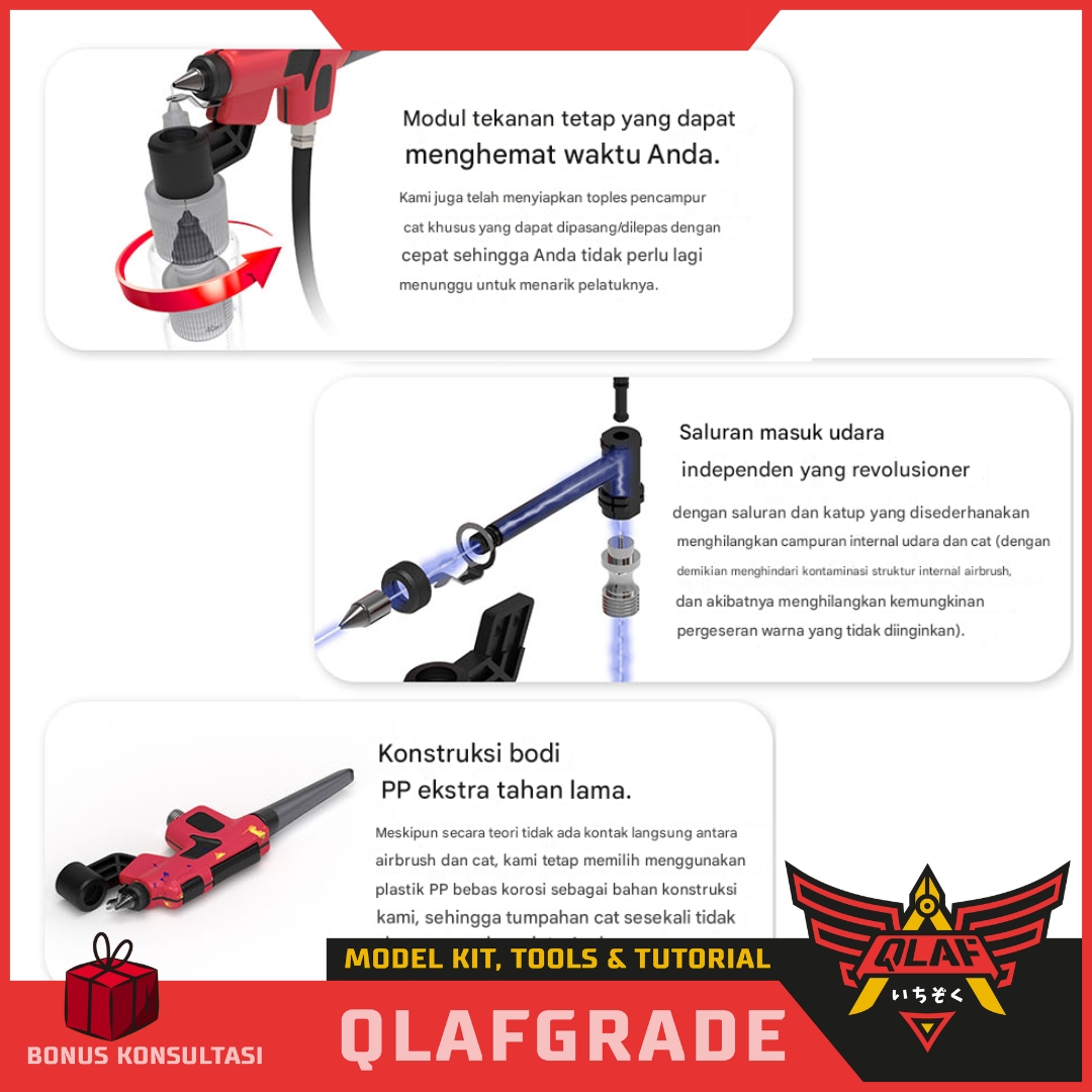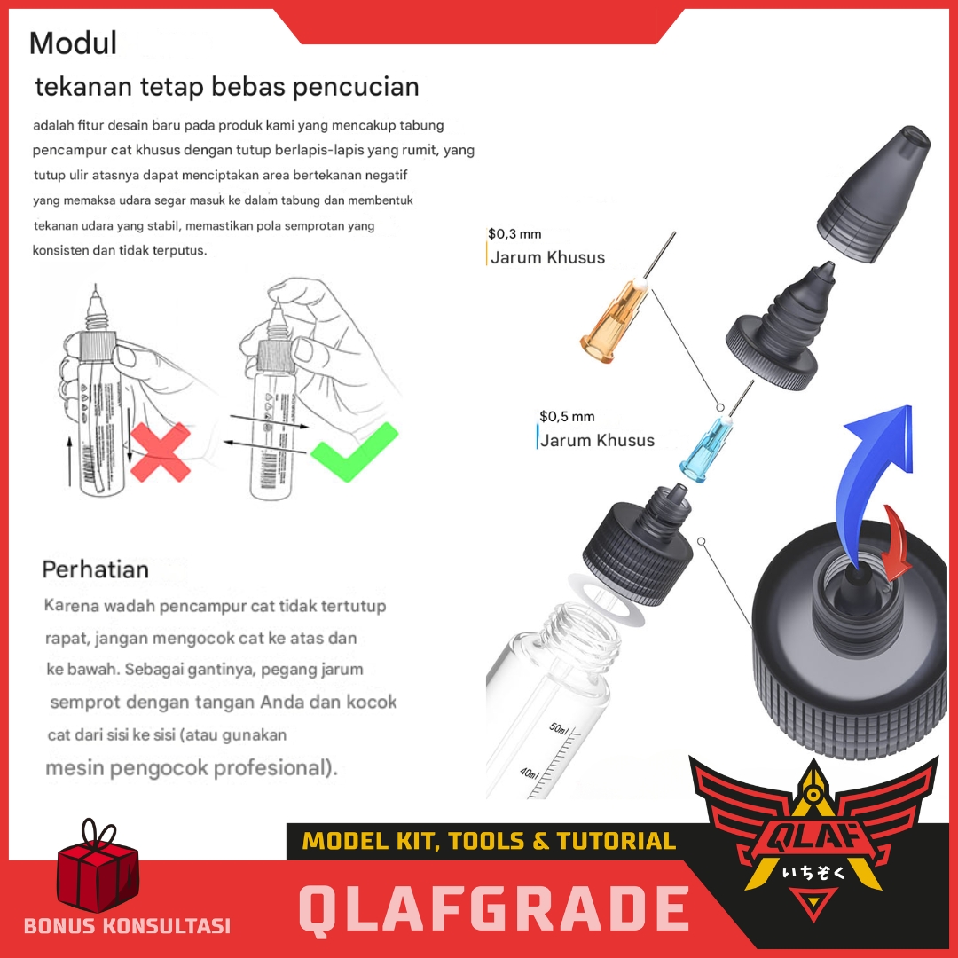 Bahan: Badan airbrush terbuat dari bahan plastik PP (Polypropylene) yang tahan lama dan bebas korosi.