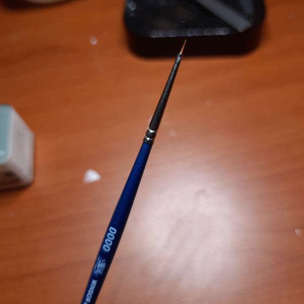 Kuas dengan ujung paling kecil, cocok untuk detailing pilot gunpla yang super kecil dan detail.