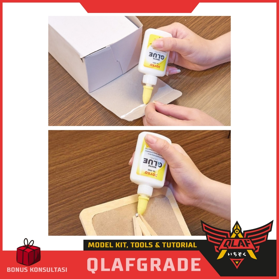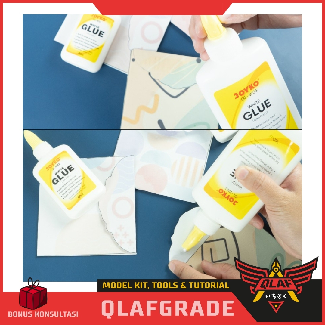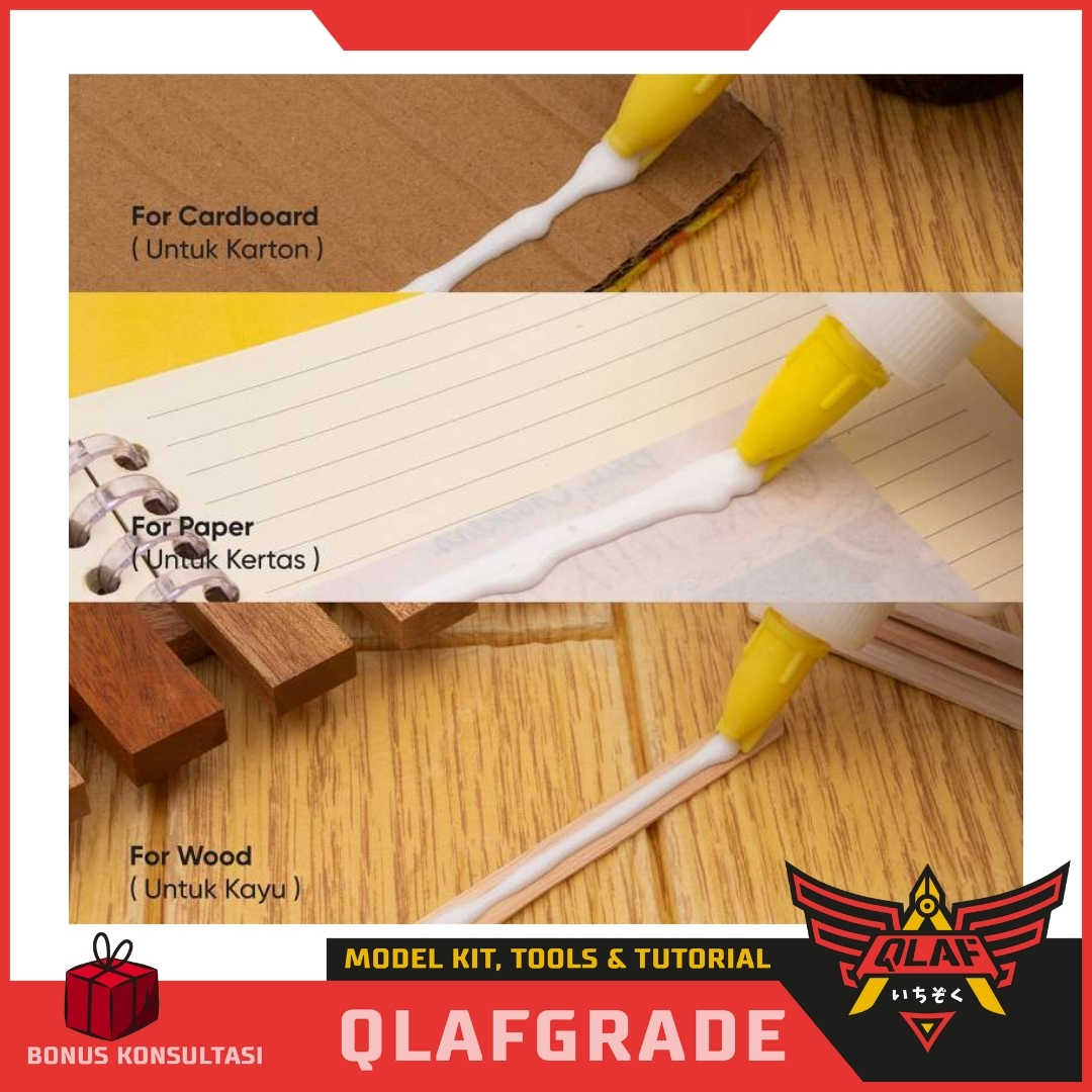 Cairan Lem Putih, akan mengering (Dries Clear) menjadi bening/transparan saat kering, tidak meninggalkan bekas (Tak Berbekas) dengan daya rekat Super Kuat (Super Strong) dan merekat cepat (Bonds Fast).