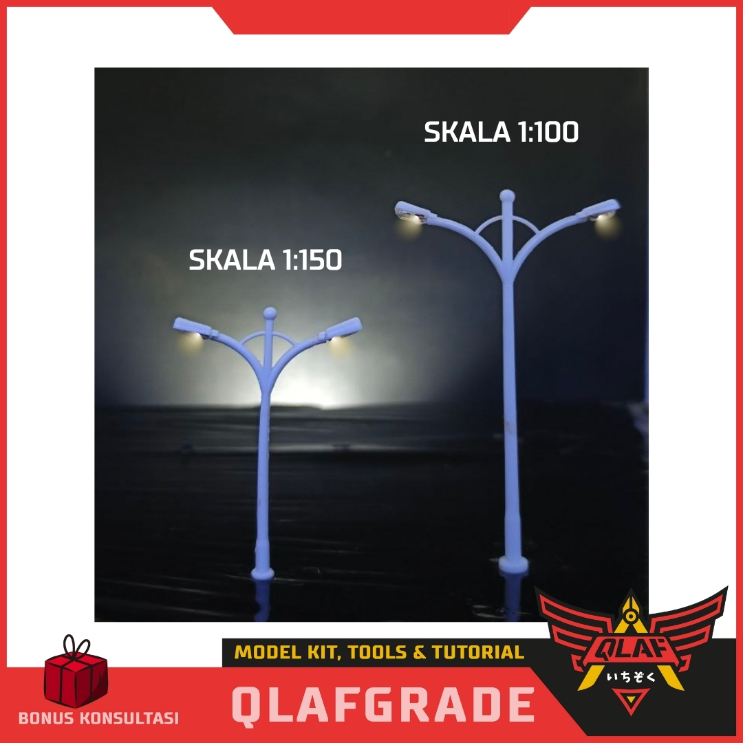 MAKET TIANG LAMPU ALAN DUA KEPALA TWO HEAD LIGHT DIORAMA MINIATUR