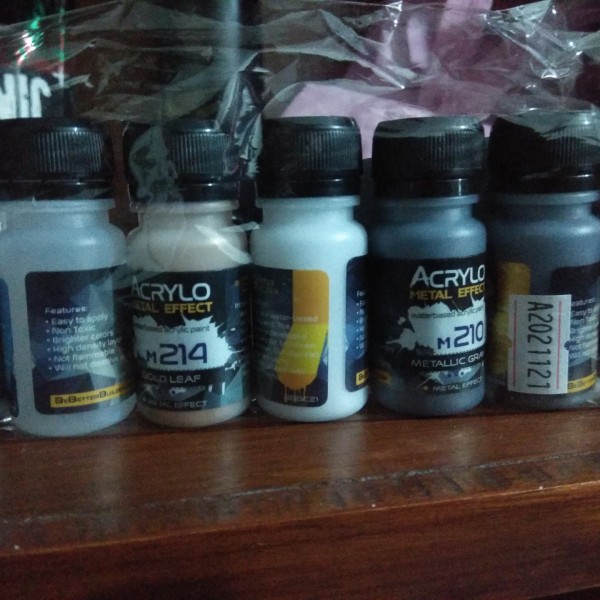 iseng-iseng cobain acrylic water based paint merk satu ini. ternyata oke loh. price per volumenya kompetitif. packaging oke. pengiriman cepat. bisa jadi alternatif kalau mau repaint hand brush coba-coba sampai level menengah.