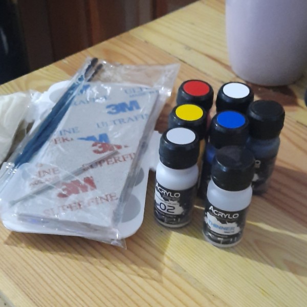 Saran kalo bisa cat acrylo pake drop bottle cap nih kaya Vallejo biar enak nakarnya.