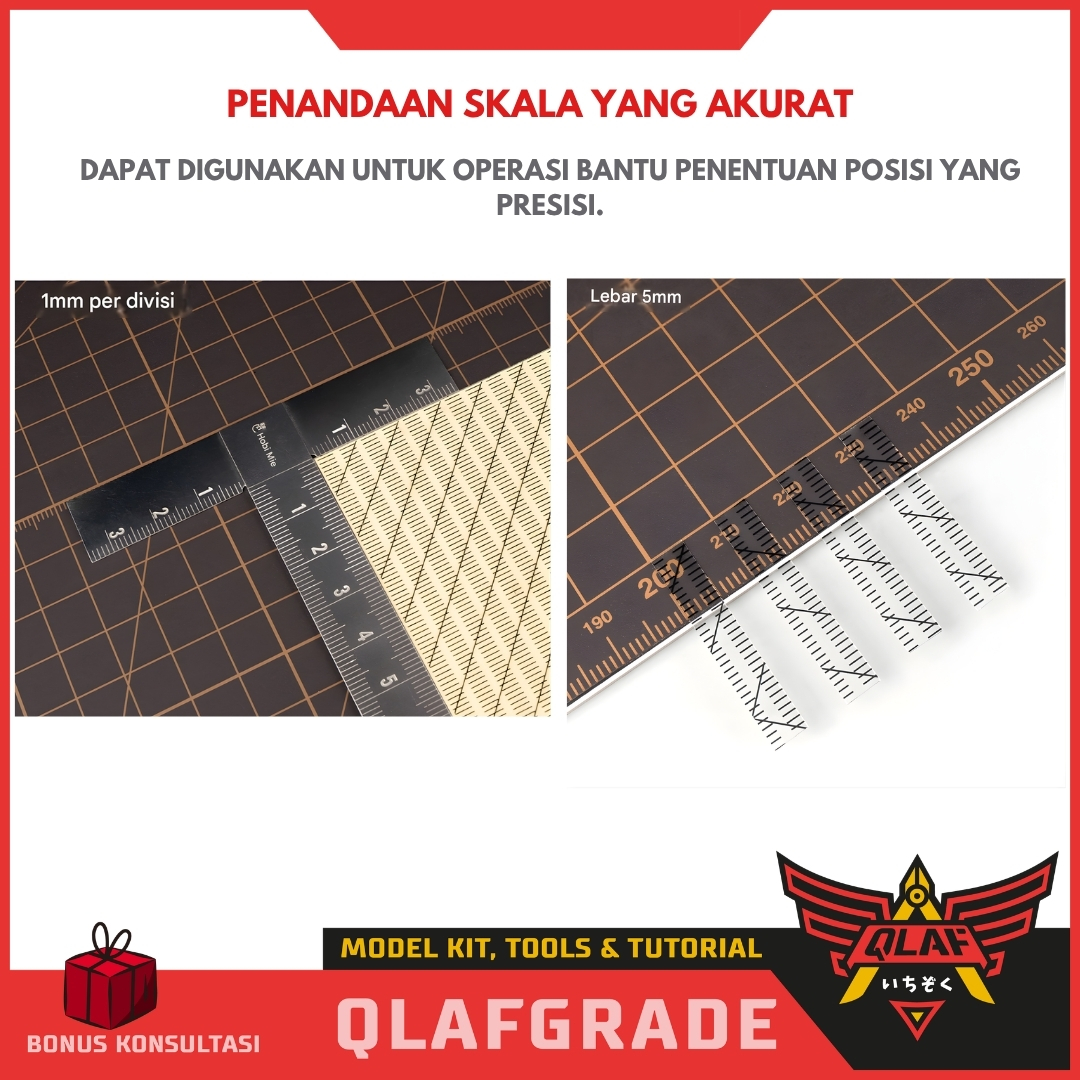 Bosan dengan hasil panel lining atau scribing yang miring atau tidak simetris? HobbyMio Scribing Tape with Scale adalah alat wajib punya untuk Anda yang ingin menambahkan detail custom pada model kit dengan tingkat presisi profesional.