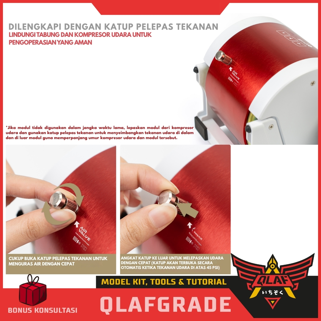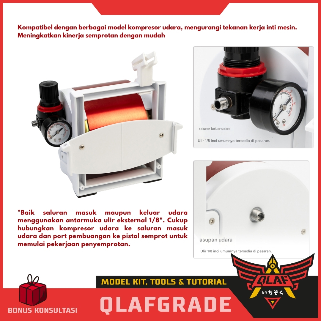 Ini adalah aksesori wajib bagi Qlafers untuk hobi airbrushing atau modeling karena membuat hasil pengecatan jauh lebih profesional, halus, dan membuat mesin kompresor Anda lebih tahan lama.