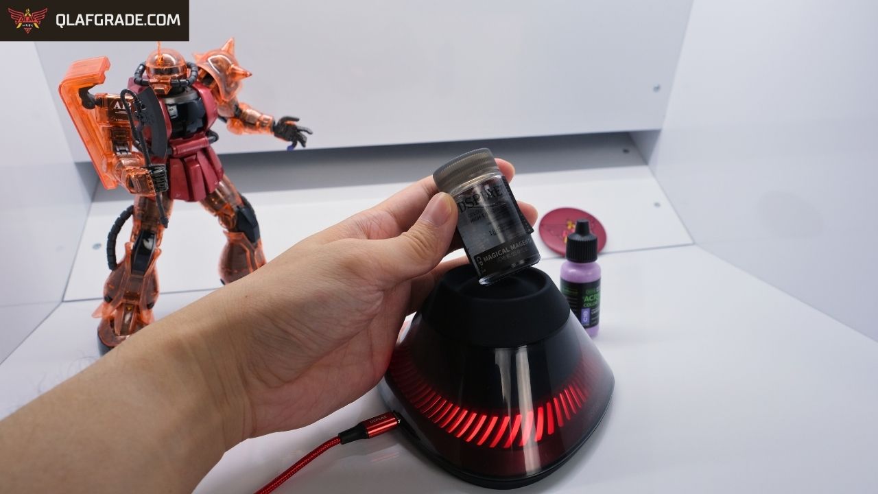 Berbeda dengan model magnetik yang mengharuskan kamu memasukkan metal rod ke dalam botol (hanya bisa lacquer dan enamel cat), atau model ikat yang butuh waktu lebih lama (Walaupun tidak butuh ditahan tangan), Paint Shaker DSPIAE MS02 menawarkan pendekatan yang lebih universal dan praktis.